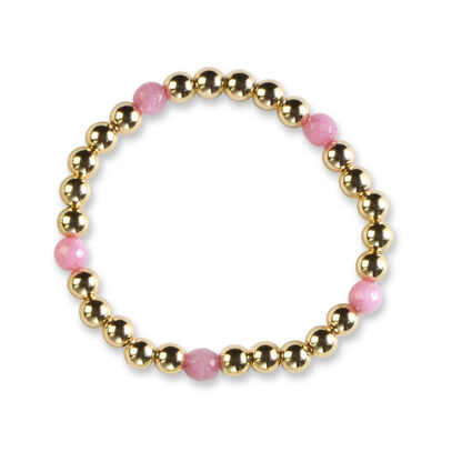 6mm 16K gold filled beads and 6mm faceted dyed pink Jade. 6 3/4”.